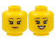 x1Minifigure, Head Dual Sided Female Dark Bluish Gray Eyebrows, Black Eyelashes, Medium Nougat Lips, Grin / Open Mouth Smile with Teeth Pattern