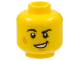 x1Minifigure, Head Black Eyebrows, Right Rounded, Medium Nougat Scuff Mark and Chin Dimple, Lopsided Open Mouth Smile with Teeth Pattern