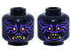 x1Minifigure, Head Dual Sided Alien Dark Purple Markings, Red Eyes, Gold Fangs, Clenched Teeth / Fierce with Open Mouth Pattern