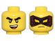 x1Minifigure, Head Dual Sided Reddish Brown Eyebrows, Nougat Scar, White Bandage, Lopsided Grin / Black and Red Mask with Bright Light Yellow Eye Holes, Open Mouth Scowl with Teeth Pattern