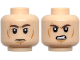 x1Minifigure, Head Dual Sided Dark Brown Eyebrows, Upper Eyelids, Nougat Scar, Medium Nougat Cheek Lines and Chin Dimple, Neutral / Angry Open Mouth Scowl with Teeth Pattern