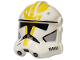 x4Minifigure, Headgear Helmet SW Clone Trooper (Phase 2) with Holes with Black Visor, Yellow Markings and Light Bluish Gray Cheek Indents Pattern